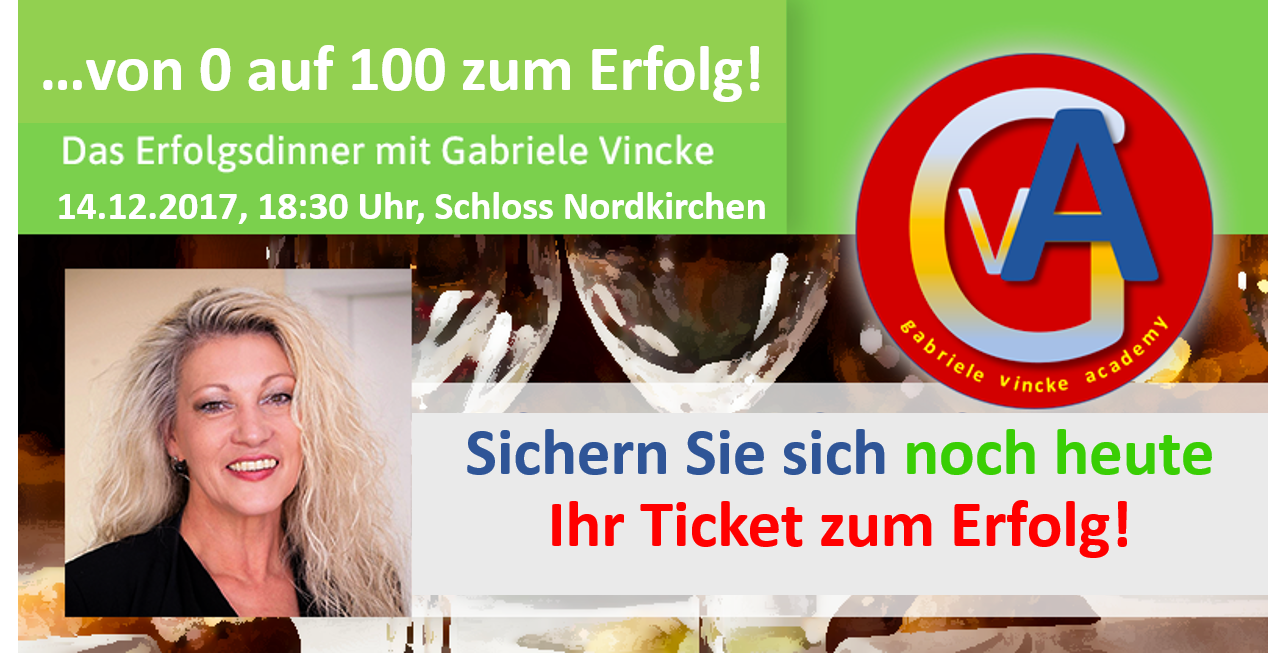 …startet unser 10. Erfolgsdinner im wunderschönen Schloss Nordkirchen. Ich freue mich schon sehr auf heute. Wenn Du auch noch dabei sein möchtest, hast Du nur noch bis 12:00 Uhr die Möglichkeit Dich anzumelden. Also tue es jetzt, melde Dich schnell mit Klick hier an.